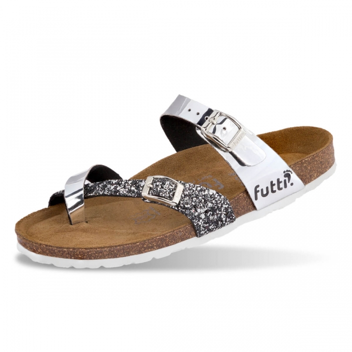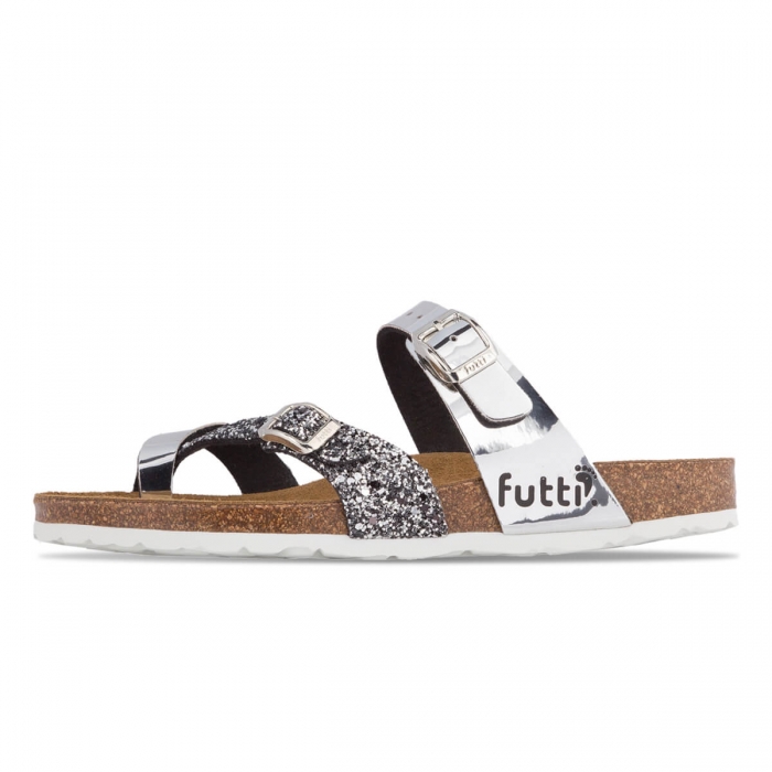 Futti Hana Silver Glitter Зошто Futti ? Природно движење и трчање Со Futti производите Вашите стопала се враќаат на природното движење – босоного движење по мека, густа земја без чувство на вкочанетост. Стопалото е постојано поставено во неговата природна положба. Вашата тежина подеднакво се распоредува преку стопалото. Резултатите се помалку болки во стопалата, зглобовите на нозете и колената, со што се намал.. Category: Product #: Futti Hana Silver Glitter 98447 Regular price: 1.275 ден. 1.275 Available from: HOLDER DOOEL